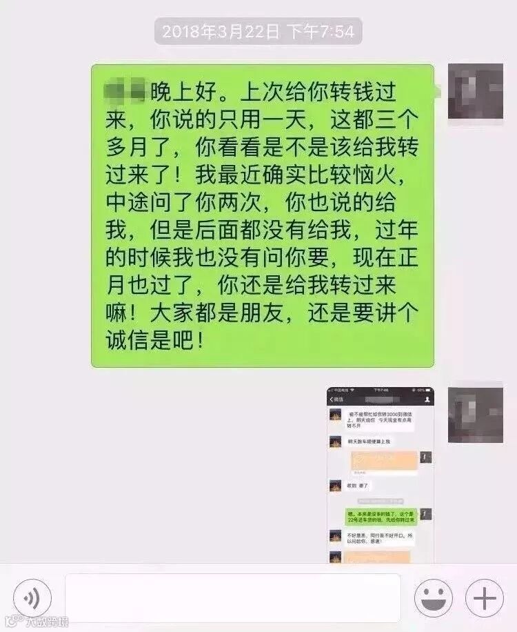不久前一男子向熟人微信转账3000元对方承诺第二天归还可一晃大半年过去了……