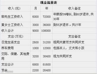假如,现在汪先生一家有十万年收入,汪先生夫妇呢,月收入是9000元,汪先生的年薪每年将以5%的速度增长(包含通货膨胀率因素),按理想状态计算,30年后汪先生夫妇的年薪为22.68万元。
