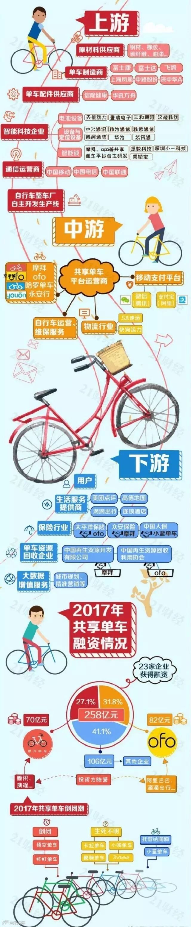 近两年,共享单车飞速发展,已然成现象级应用。2017年,一大批共享单车扎堆出世,整个共享单车产业融资近260亿元,阿里、腾讯入局,搅动共享单车格局。