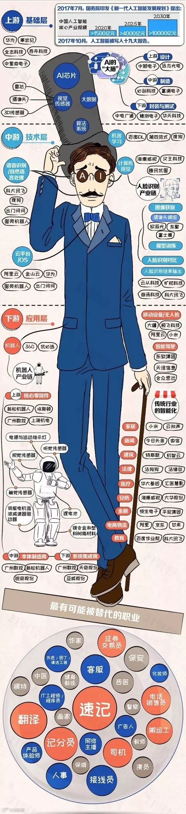 人工智能将颠覆哪些行业、取代哪些职业?又会给哪些产业带来机会?如何淘金万亿市场?一图看懂AI产业链机会!