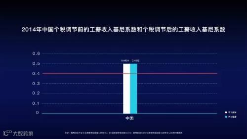 但中国呢,个税对基尼系数的调节作用只有0.01左右,仅为这些国家调节作用的1/20左右,即便调节之后,税后基尼系数仍然在警戒线0.4以上,说明个税并没有对调节富人的收入起到太大作用。