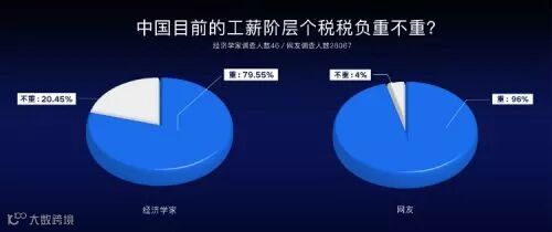 网易研究局对包括余永定、邱晓华、姚洋、黄有光等46名知名经济学家和数万名网友进行了个税问题的问卷调查,其中,认为中国目前工薪阶层税负过重的经济学家达到79.55%, 28067名网友中持这一观点的网友比例高达96%。