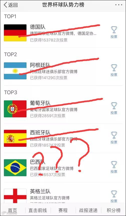 早前,德国队、阿根廷队、葡萄牙队、西班牙队……四支在微博世界杯球队势力榜中打call前四的队伍都惨遭淘汰!
