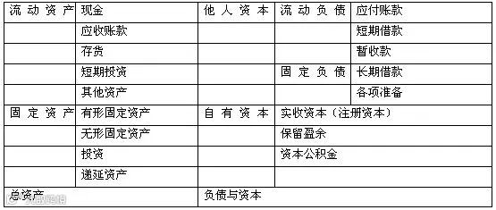 这张表的右边是“负债+所有者权益”,其实就是“借来的钱+自己的钱”。左边是“资产”,也就是右边这些钱花到了左边什么地方。会计概念里说的“资产=负债+所有者权益”,其实就是“我所有的钱=借来的钱+自己的钱”。