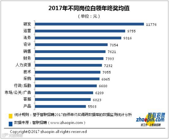 2017年全国白领人均年终奖7278元!