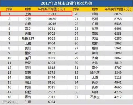 成为2017年白领年终奖均值最高的城市!