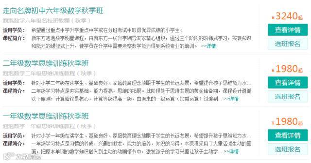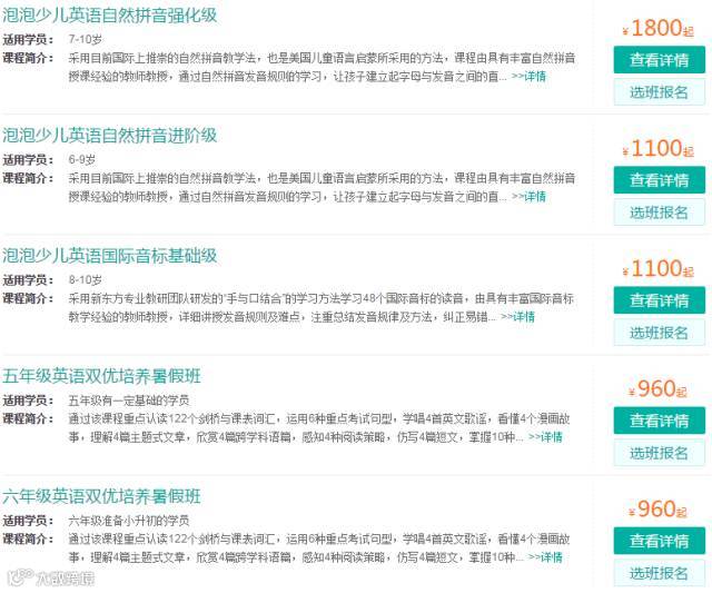 就以一些连锁补习机构的课程为例好了