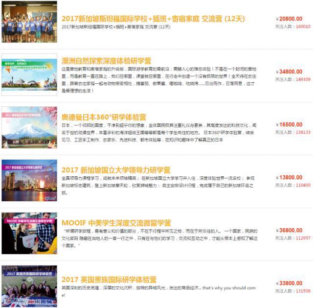 以国内几大热门夏令营目的地为例