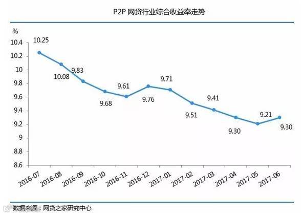 月报显示,网贷行业综合收益率为9.30%,环比上升了9个基点(1个基点=0.01%),但同比仍然下降了108个基点。