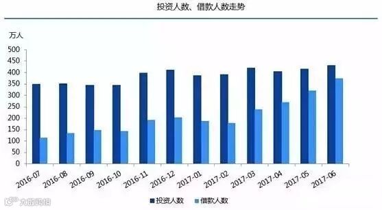 资料显示,2017年6月P2P网贷行业的活跃投资人数、活跃借款人数分别为430.8万人、373.53万人,其中活跃投资人数环比上升了3.82%、活跃借款人数环比上升了15.96%。
