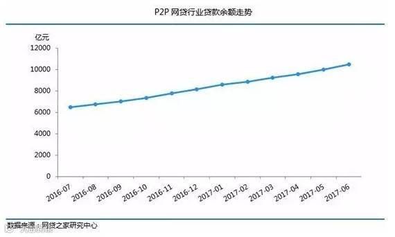 截至2017年6月底, P2P网贷行业贷款余额增至10449.65亿元,环比5月底增加了4.85%,首次突破了万亿元大关。