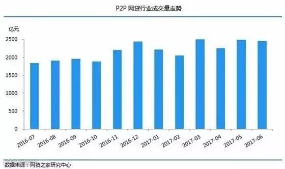 资料显示,6月P2P网贷行业的成交量为2454.91亿元,相比5月出现了小幅下降,环比减少了1.35%。