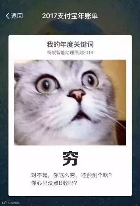 好了,烦心的事说完了,小金给大家说一说,有趣又开心的事吧~今年的支付宝账单来了点新创意,支付宝根据大数据运算,给每个人2017年的消费行为都来了一个关键词。
