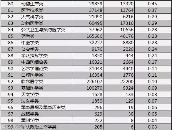 相对容易就业的专业分布在一些供需量不大的冷门专业,比如军事类、医学类、天文学类、艺术理论学等,其中尤其以医学供需矛盾最为突出,在最容易就业的20个专业中,医学类专业有10个之多,占据了半壁江山。