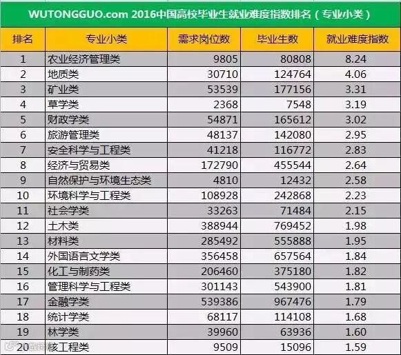 地质类、矿业类是由于中国经济放缓以及供给侧改革造成的需求量的减少;而经济贸易类岗位需求量并不低,但是由于此专业毕业生供给量更大,因此经济贸易类专业毕业生就业难度较大。