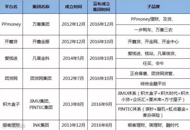 表4: 2016年P2P网贷行业集团化情况