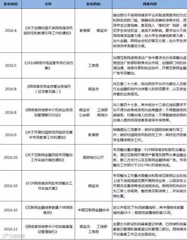 表1: 2016年P2P网贷行业相关监管文件