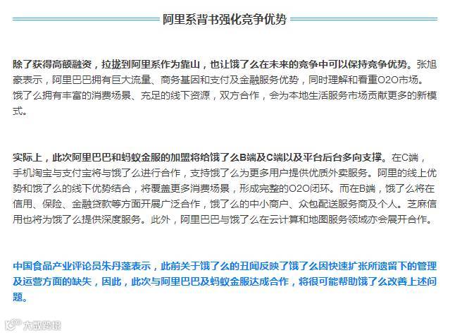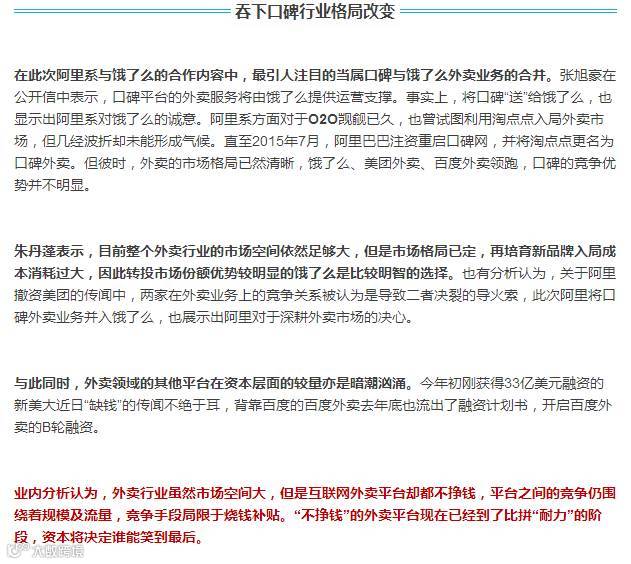 吞下口碑背靠阿里系 饿了么补血备战烧钱竞赛