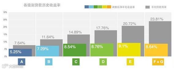 费用具体到LendingClub上来看,对杨白劳:平台分别收取A级别 (信用最高级别)贷款1%至5%, B至G级别5%至6%的贷款设立费用。对黄世仁:平台收取每一期贷款偿还额1%的服务费 (Service Fee)。Lending Club占大头的是A、B、C三级别贷款,其中B、C又占多数。不考虑货币时间价值,一笔36个月期限、年度百分利率(Annual Percentage Rate, APR)为12%、设立费用为5%的的B级别10000美金贷款,从开始到结束,Lending Club大概可以获得500美元设立费以及$119.57的服务费(此处计算省略,APR转化为每月复利计算,有兴趣的可以使用金融计算器计算)。无须承担交易对手风险而坐收贷款总额6.2%的渔利,市场经济再次证明了皮条客总是会有春天。