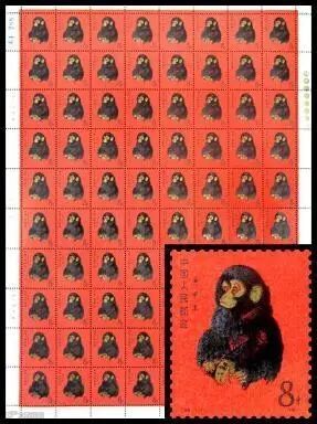 作为生肖邮票的“窜天猴”,发行时《庚申年》猴票面值仅0.08元,当时集邮市场上卖到0.1元,2009年底每枚猴票的价格涨至5000元,2010年12月市场价已破万元。眼下,“金猴”的市场价已经从1万元出头上涨到1.2万元了,最高峰达到1.5万元,相比8分钱的面值升值了18万倍。有媒体报道称,一套《庚申年》整版(80枚)金猴票已经超过150万元,可抵山东泰城三套房。