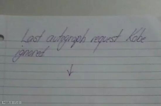 商品描述:我去斯台普斯看告别战时准备让科比签名没签到,但他看了这张纸。补充描述:我问他要了签名,他看了我和这张纸一眼,继续往前走没停。