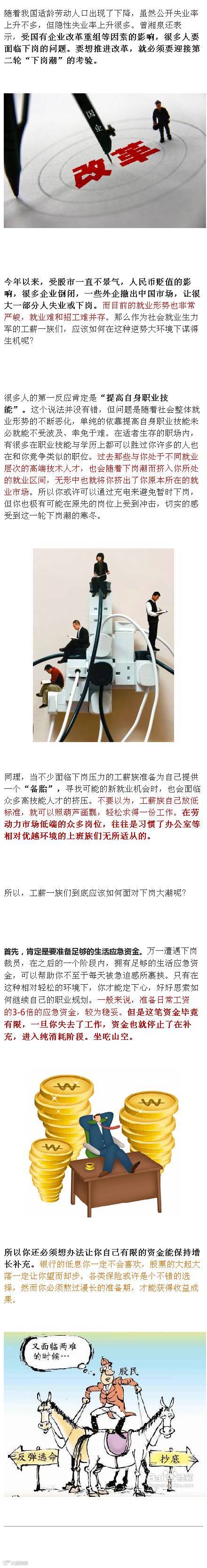 上世纪80、90年代的国企下岗潮仍然在很多人心里记忆犹新,如今专家却告诉大家要准备迎接第二轮下岗潮了。就在11月7日,第二届“人大老博士论坛”在北京举行,中国就业研究所所长曾湘泉出席并称,因为国企重组等因素影响,中国将迎接第二轮下岗潮。曾湘泉表示,劳动市场信号已失真,统计局公布的登记失业率对于研究者没有用。这个消息发布后引起了很多人的担忧。