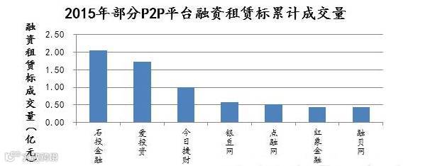 从平台看,截至9月底,石投金融、爱投资、今日捷财的融资租赁标2015年累计成交量突破了亿元大关。