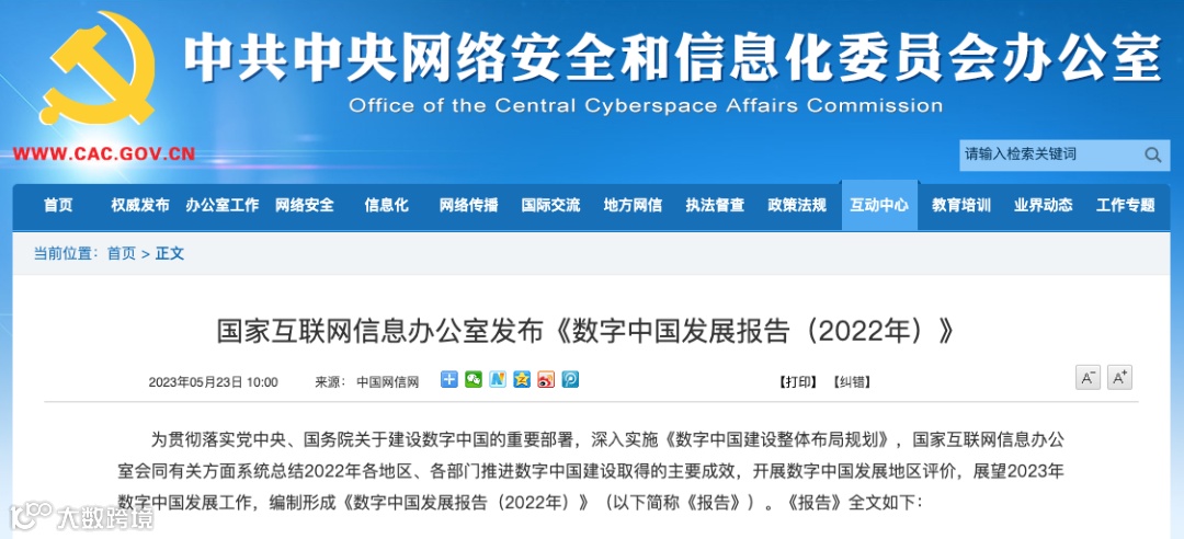 为贯彻落实党中央、国务院关于建设数字中国的重要部署,深入实施《数字中国建设整体布局规划》,国家互联网信息办公室会同有关方面系统总结2022年各地区、各部门推进数字中国建设取得的主要成效,开展数字中国发展地区评价,展望2023年数字中国发展工作,编制形成《数字中国发展报告(2022年)》,一起来看~