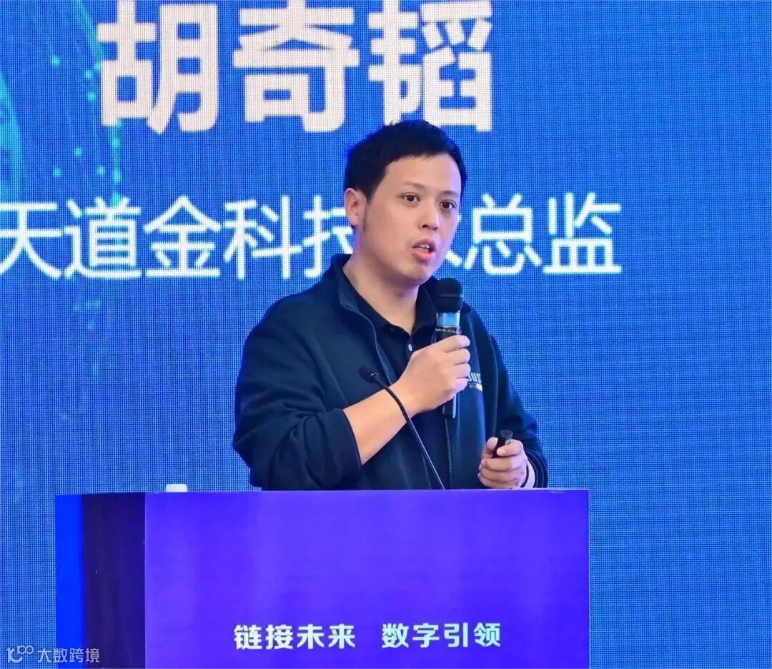 现场,天道金科股份有限公司技术总监胡奇韬代表公司以《大数据、区块链、AI等技术在数据要素领域的应用》为题进行主旨演讲,从天道金科前沿产品与服务模式、场景应用案例等多角度出发,全面分享了数字化发展下的天道实践经验。