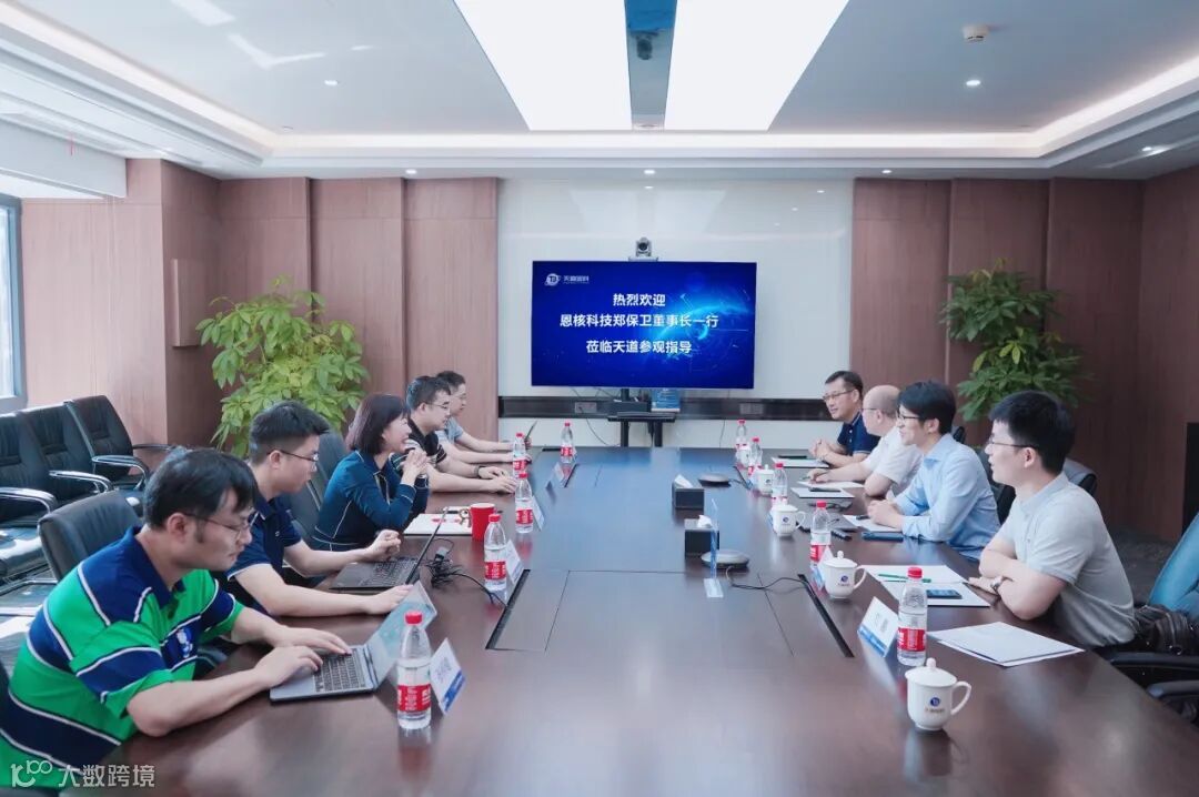 9月19日,恩核(北京)信息技术有限公司(以下简称“恩核”)董事长郑保卫一行到访天道金科杭州总部交流合作,公司总裁任军霞携公司业务团队热情接待,双方就进一步探索合作新模式、谱写共赢发展新篇章进行了座谈交流。