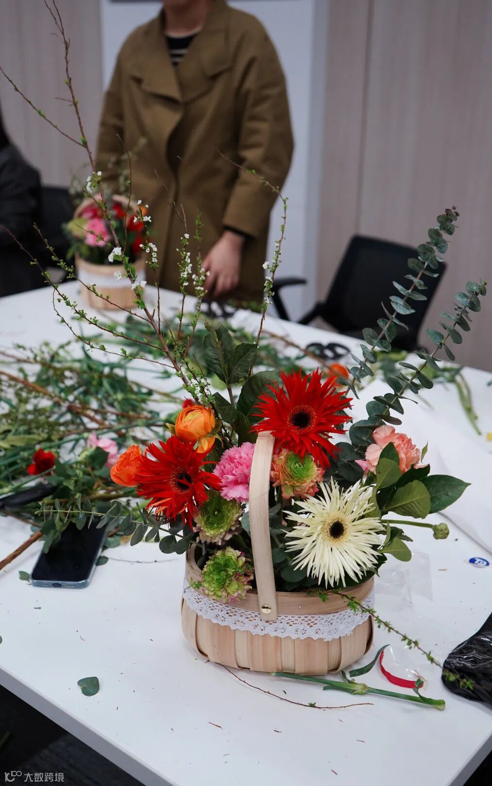 临近尾声,一盆盆错落有致、色彩斑斓、赏心悦目的插花作品呈现出来,寄托着大家对美的理解和对幸福的感悟。