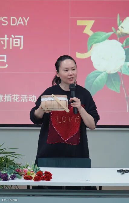 活动特别邀请了经验丰富的花艺师给大家讲授知识,从插花艺术的基础知识、工具使用、插花造型、色彩搭配、花语等方面进行了深入浅出地讲解,并在现场做了生动的演示。