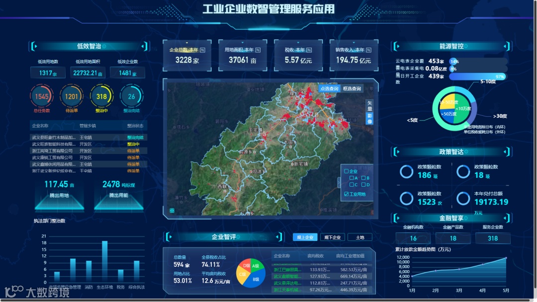 由天道金科与金华武义县联合创新的“工业企业数智管理服务应用”,于2022年在武义县全省率先上线,在对全县4400多家工业企业精准画像的基础下,通过推动数据归集、打通政银评价体系,实现企业需求与金融资源供给的有效对接。截止目前,已线上受理企业金融需求订单622笔,授信金额34.93亿元,累计放款25.7亿元。