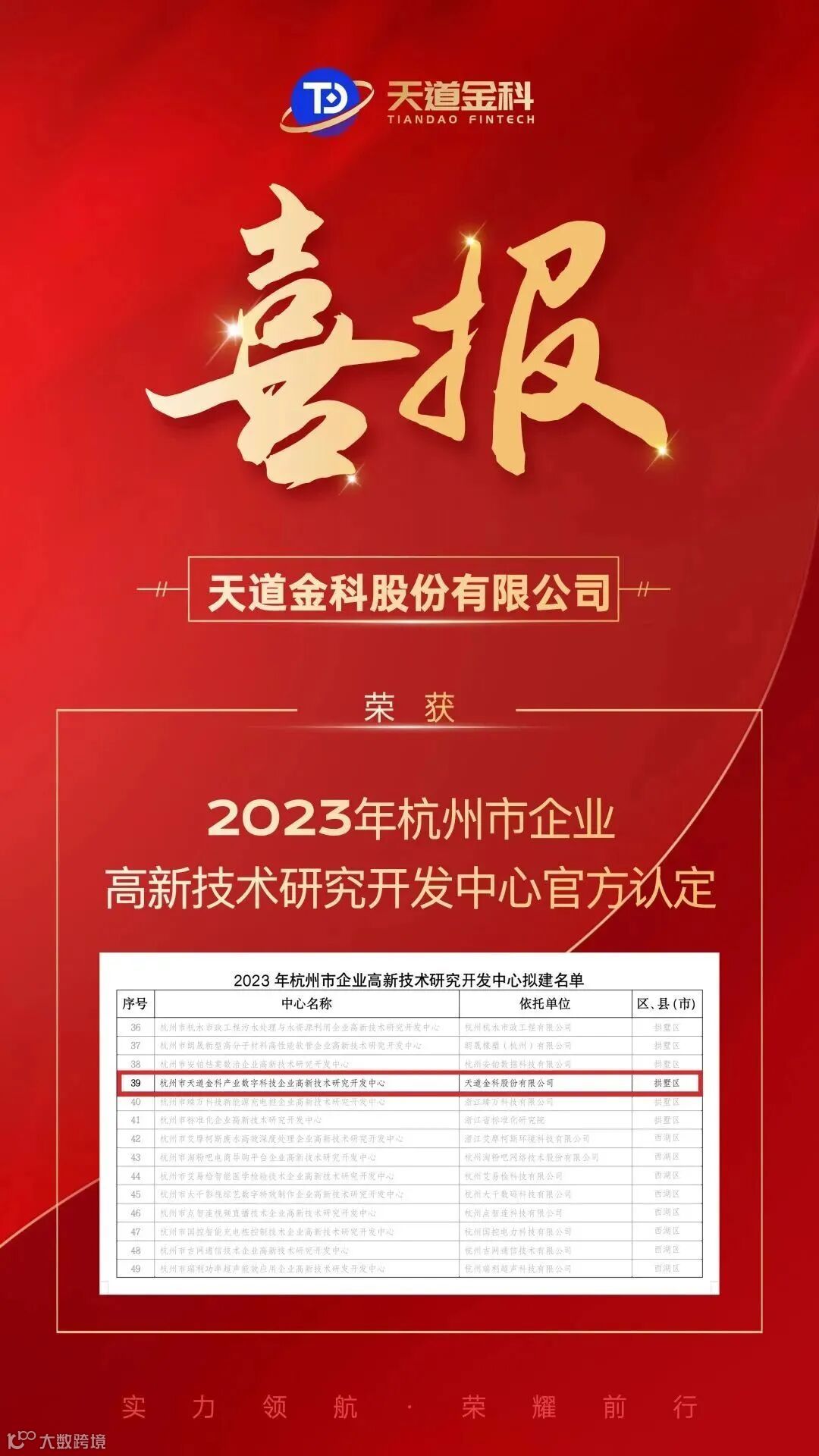 近日,杭州市科学技术局正式发布2023年杭州市企业高新技术研究开发中心拟建名单,经专家评审、现场考察和推荐公示,天道金科设立的“杭州市天道金科产业数字科技企业高新技术研究开发中心”符合建设条件并获官方认可,标志着天道金科在科研实力、创新驱动、成果转化等方面再迈新高。