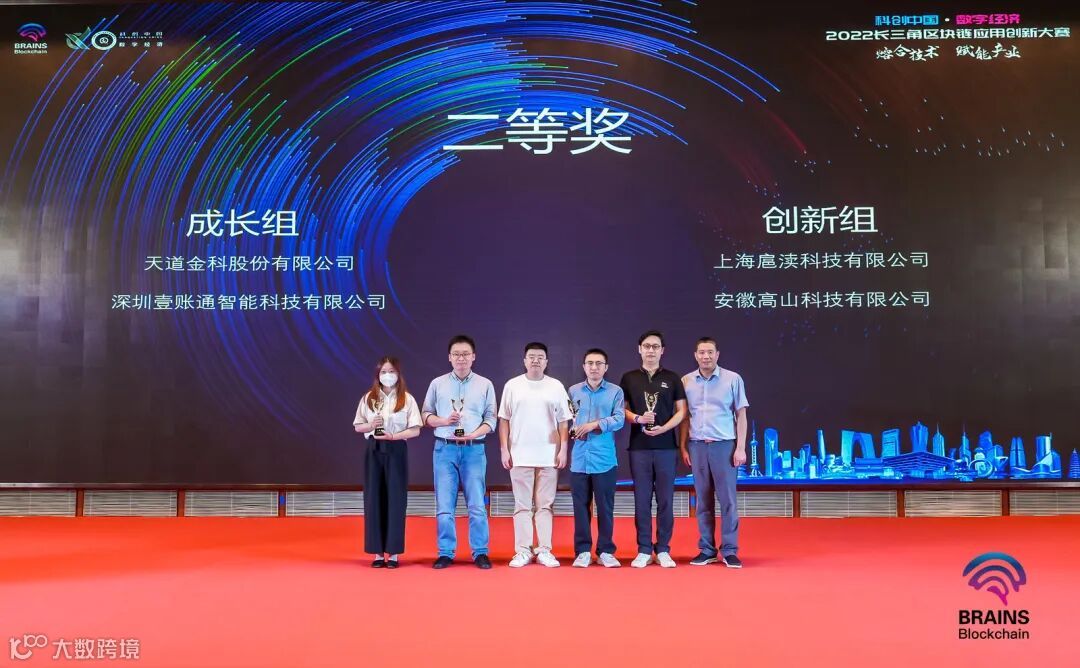 2022年7月15日,由“科创中国”数字经济科技服务团、上海长三角区块链产业促进中心、上海区块链技术协会联合主办的2022长三角区块链应用创新大赛正式完成决赛并圆满闭幕。天道金科团队与来自全国各行业31个入围决赛的优秀团队同台竞技,凭借卓越的区块链创新应用实力在总决赛赛场上夺得二等奖的好成绩。