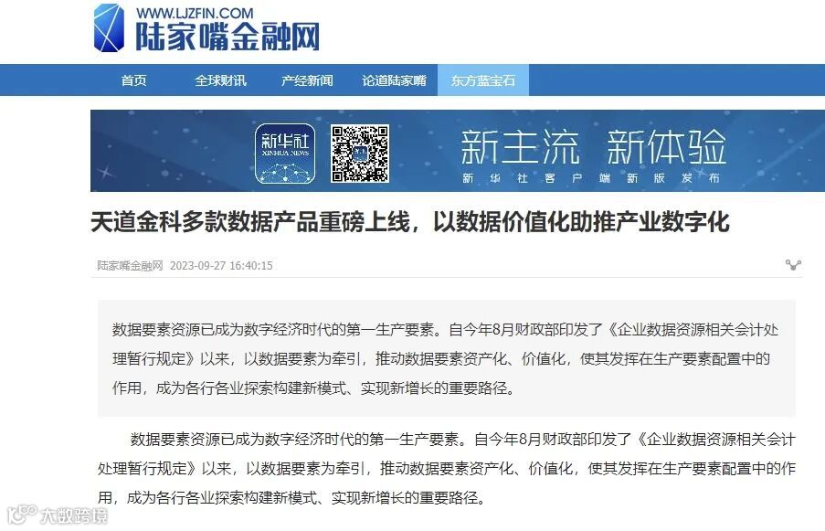 经过本月“产业链图谱”“企道多”“千里眼”“企业数字化水平测试工具”四款数据产品的重磅发布,天道金科“数字产品月”圆满结束,得到了业界高度评价,并引发了新华社客户端、陆金网、今日头条、腾讯、东方财富网、中国金融信息中心等国内多家头部权威媒体的广泛关注。