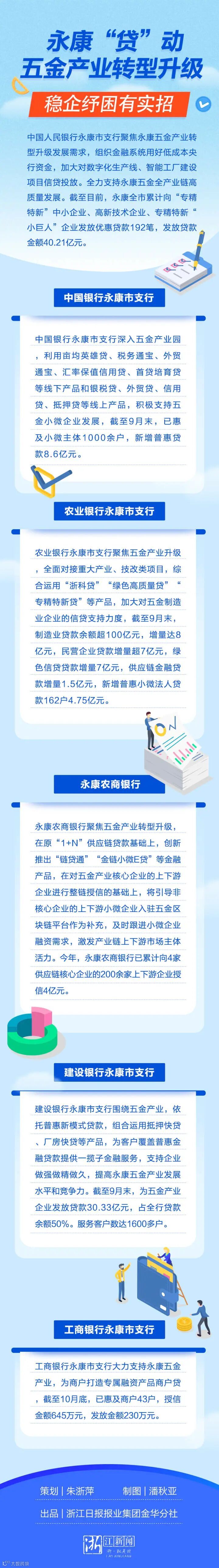 在中国人民银行永康市支行的指导下,依托五金产业区块链金融服务平台与子公司浙江浙里信征信有限公司建设运营的浙江省企业信用信息服务平台(金华站),对接开展五金供应链融资服务,全力支持永康五金全产业链高质量发展。截至目前,累计向“专精特新”中小企业、高新技术企业、专精特新“小巨人”企业发放优惠贷款192笔,发放贷款金额40.21亿元。