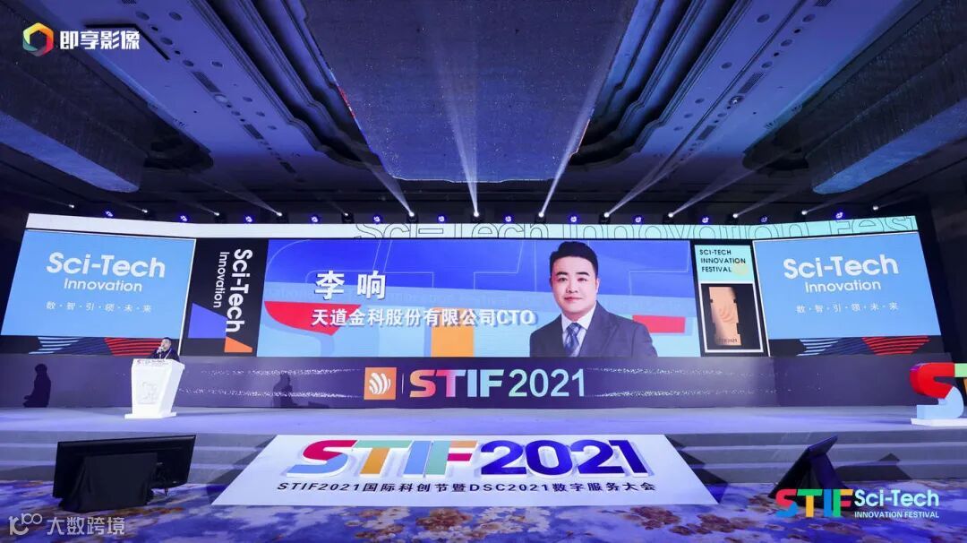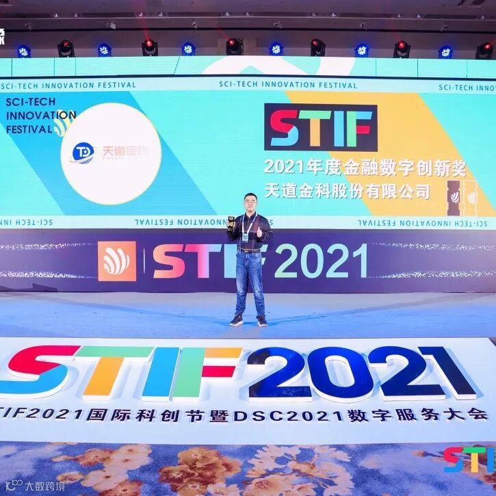2021年12月7日至8日,STIF2021第二届国际科创节暨DSC2021数字服务大会在天津隆重举行。会上,天道金科被授予“2021年度金融数字创新奖”,同时,天道金科CTO李响就《产业数字科技赋能金融创新》做主题演讲,与各领域尖端企业深度分享天道科技创新成果,共同探讨数字经济发展新机遇。