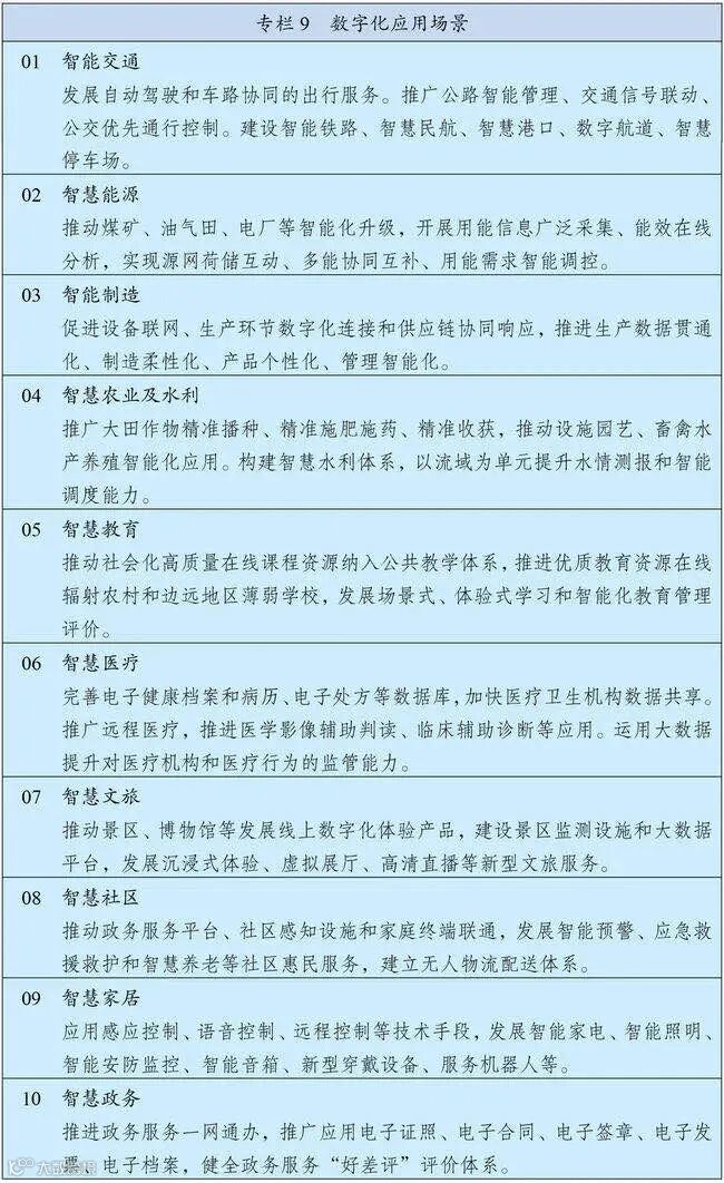 数字经济重点产业和数字化应用场景的具体范围(点击图片放大)