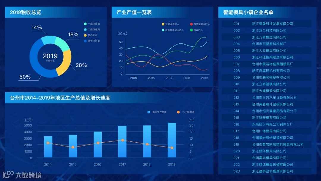 天道平台为黄岩智能模具小镇搭建的数字化大屏