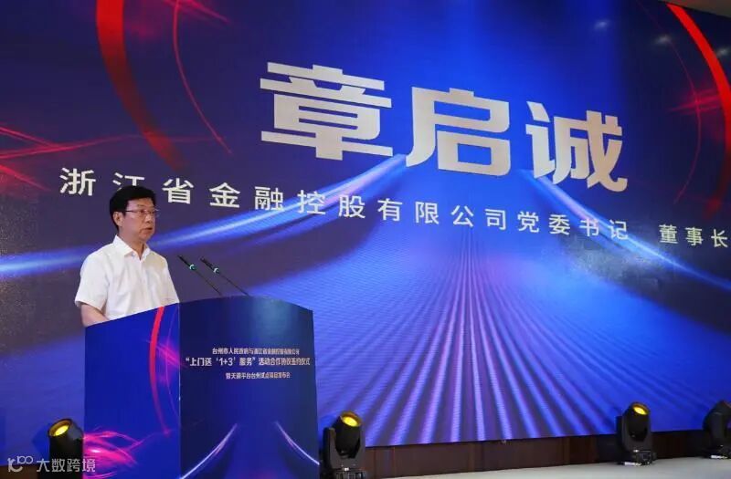 章启诚董事长在致辞中表示本次签约仪式暨天道平台台州试点项目发布会既是省金控与台州市开展全面合作的里程碑,更是在当前非常之时,助力台州市全面夺取经济高分报表的推进会。章董事长对双方合作表达了三点希望:一是聚焦大项目合作,着力提升政府产业基金投资率和撬动率,助力台州高质量产业投资跑出加速度;二是聚焦大数据合作,着力打造好“天道平台”试点项目,助力台州“全国小微金改示范区”建设再上新台阶;三是聚焦大互动合作,着力强化“三个一”长效机制,助力台州在“重要窗口”建设中走在前列。