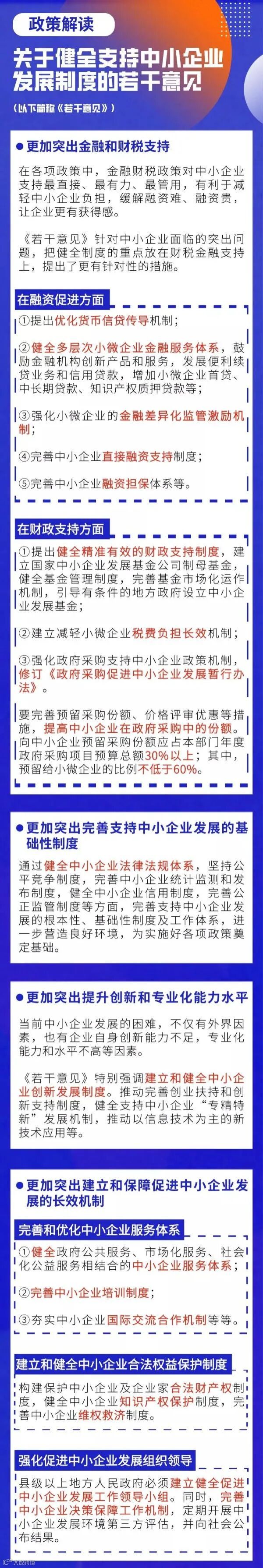 一图看懂 | 关于健全支持中小企业发展制度的若干意见