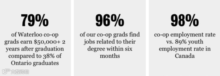 滑铁卢大学拥有全球最大的Co-op系统,凭借着高就业率和高回报率的特点,Co-op已经成为加拿大最声名远扬的学业制度。