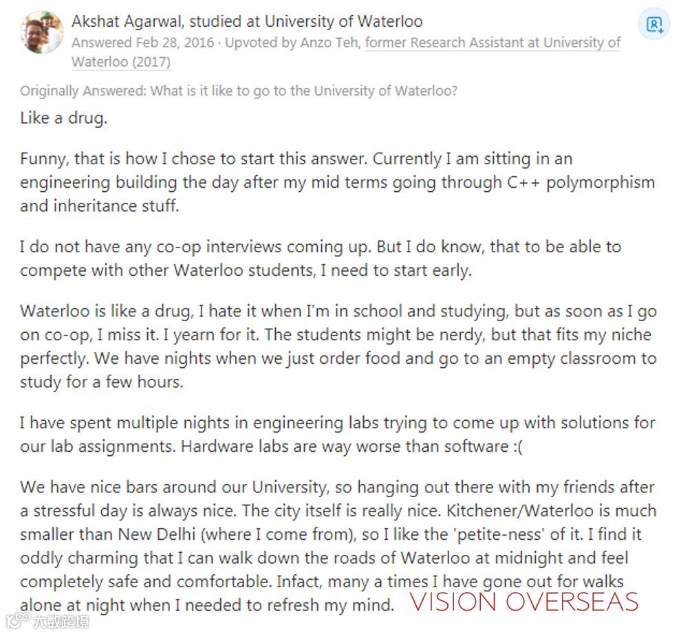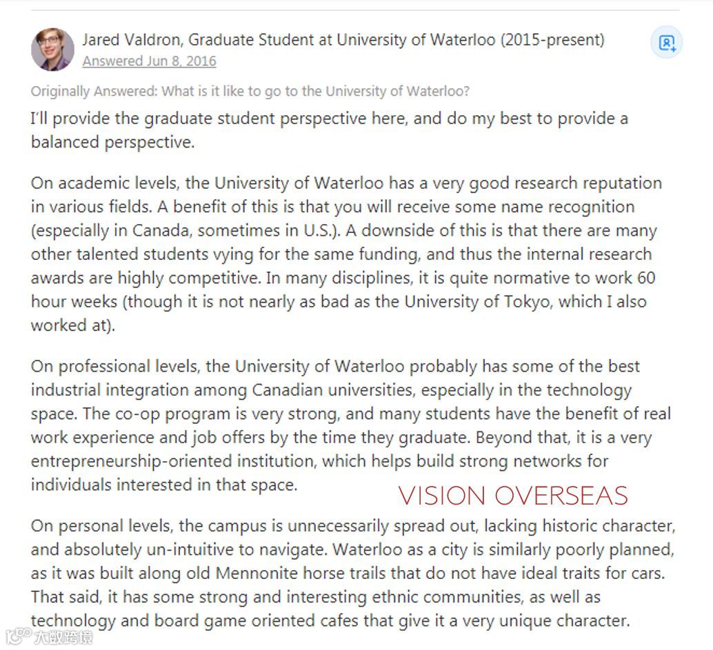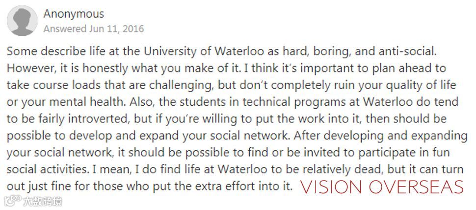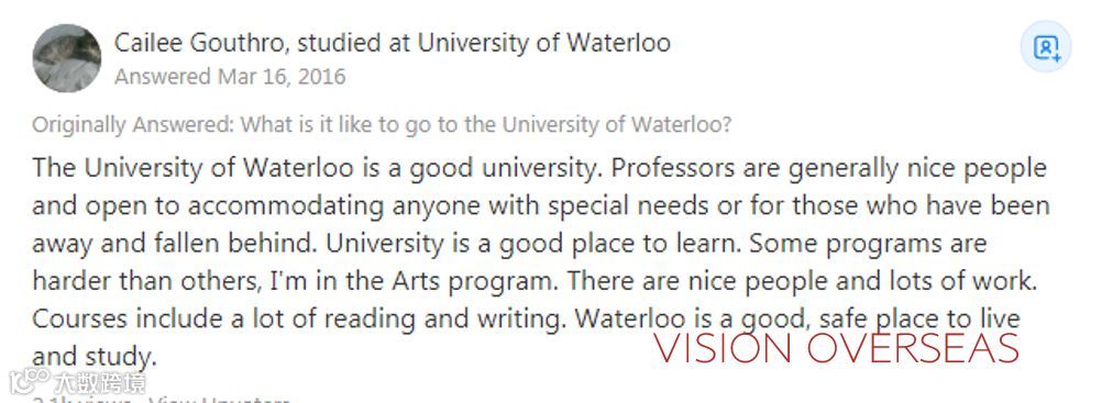 各位亲们一定想要了解真实的滑铁卢大学,那么多听一听本地人的评价和校友的意见总是没错的了。所以我们找到了quora(美版知乎)上的干货,看看大家都是怎么评价滑铁卢大学的吧。