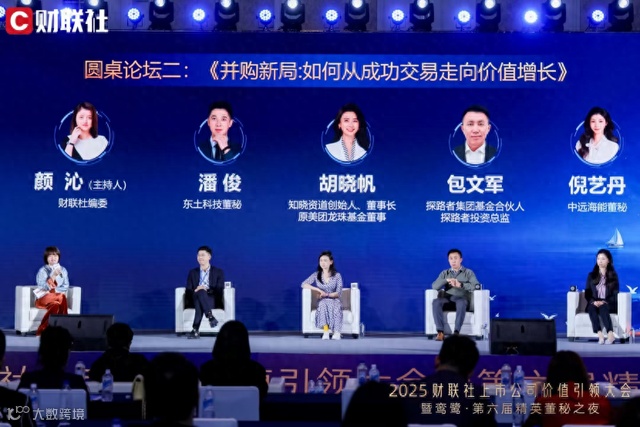 12月4日下午,在2025财联社上市公司价值引领大会暨第六届精英董秘之夜上,财联社编委颜沁与东土科技(19.930, 0.21, 1.06%)董秘潘俊,知晓资道创始人、董事长,原汇丰(中国)支行行长,汇丰(香港)私行、鼎晖/经纬/美团龙珠基金前董事胡晓帆,探路者(10.270, 0.15, 1.48%)集团基金合伙人、探路者投资总监包文军及中远海能(11.350, 0.11, 0.98%)董秘倪艺丹围绕圆桌论坛主题“并购新局:如何从成功交易走向价值增长”,深入探讨了并购新局下企业如何穿越交易的喧嚣,并最终实现价值的增长。
