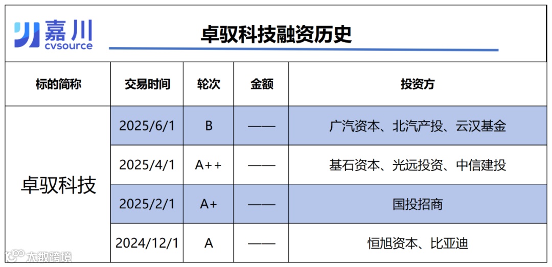 2024年后,卓驭开启了外部融资。在两年时间内迅速完成了4轮融资。