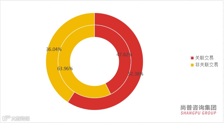从关联交易情况来看,在上月A股并购重组的42家上市公司中,有20家涉及关联交易,而22家则为非关联交易。从交易金额分析,关联交易金额总计达3,553,519.39万元,非关联交易金额则为2,002,629.56万元,二者在总交易金额中的占比分别为63.96%和36.04%。