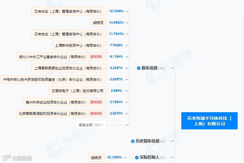 同时,芯来共创(上海)管理咨询中心(有限合伙)、芯来合创(上海)管理咨询中心(有限合伙)直接持有芯来智融的股权比例分别为15.7389%、11.7944%。