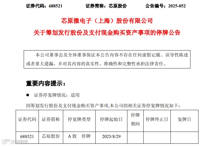 芯原股份计划自8月29日开市起停牌,预计停牌时间不超过10个交易日。截至8月28日收盘,芯原股份报153元/股,涨幅达6.99%,总市值为804.3亿元。