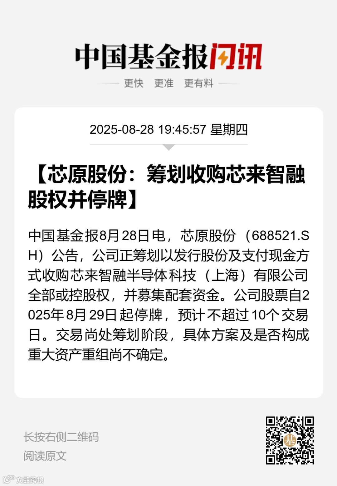芯原股份公告称,公司目前持有芯来智融2.99%的股权,通过本次交易拟取得芯来智融全部股权或控股权,但交易对方尚未最终确定。